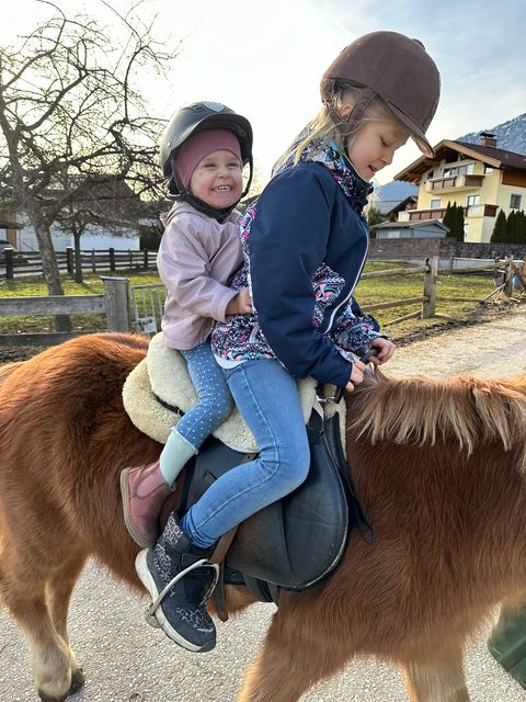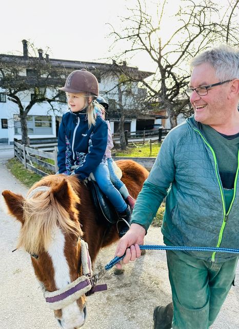 Ein weiteres Highlight auf unserem Hof ist das Ponyreiten! Unsere beiden Ponys, Lady und Leon, freuen sich darauf, mit unseren kleinen Gästen die Gegend zu erkunden. Das Beste daran: Das Ponyreiten ist für unsere Gäste kostenlos und garantiert jede Menge Spaß!